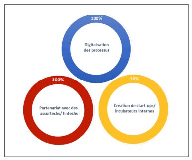En revanche, seulement une minorité d’acteurs 3 sur 13 ont développé des start up internes à l’instar de AXA (Kamet), CNP (Youse), SG Assurances (Moonshot – Internet), ce qui reste aujourd’hui une exception dans le marché de l’assurance.